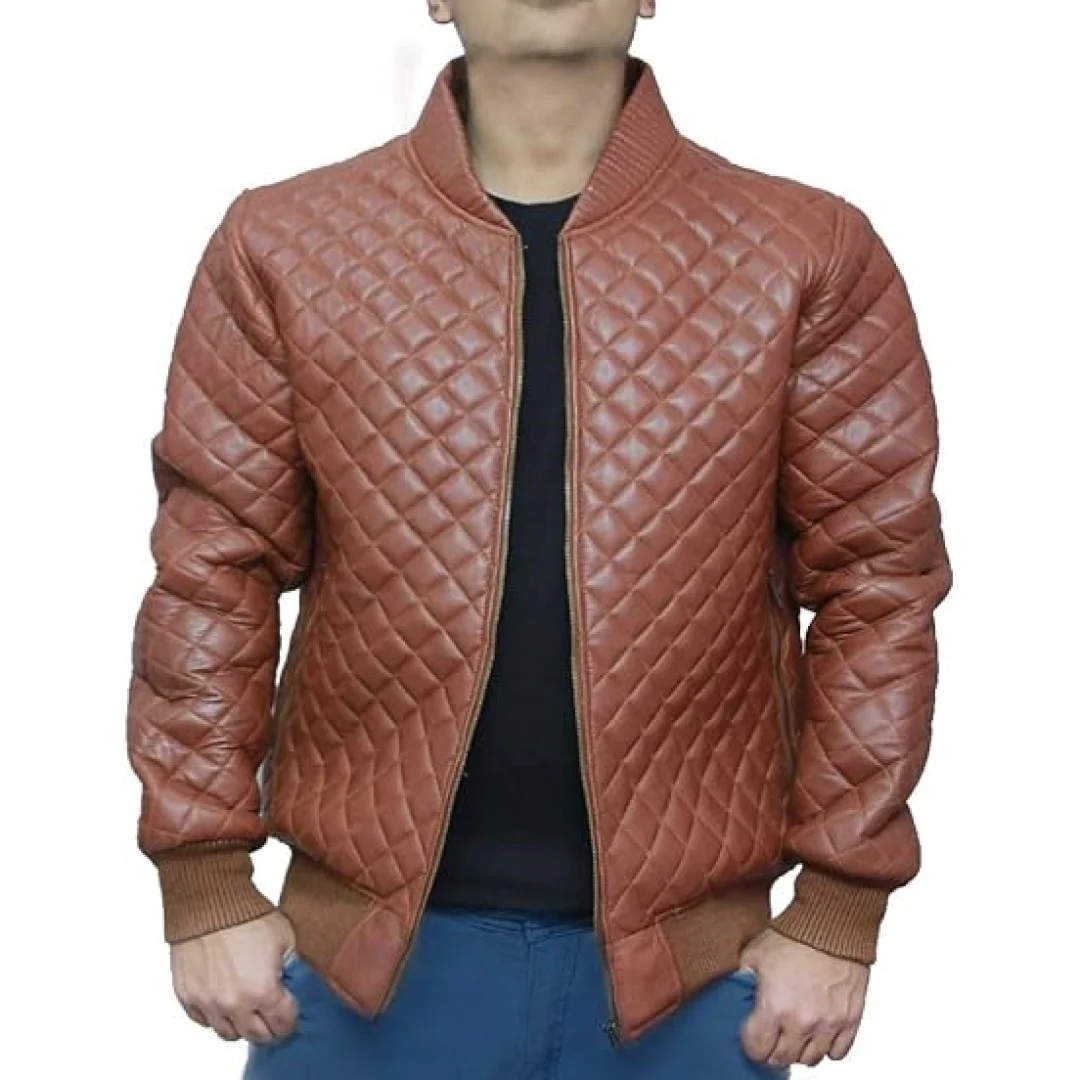 Unique Design Brown Biker Jacket For Men With Quilted Arm Design