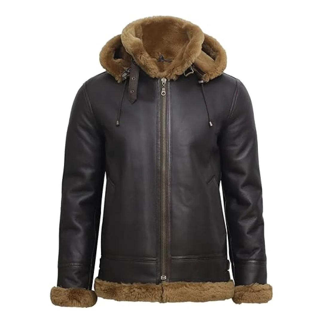 Shearling Leather Jacket For Men With Side Zip Closer