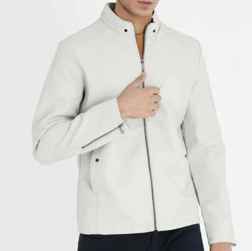 Stylish And Unique White Color Leather Jacket For Men